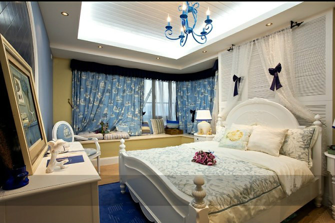 地中海風格的臥室,可以使用藍色,也可以使用白色,不同的色彩使用營造不一樣的效果。藍色的臥室,給人一種海洋般的感覺,而白色則是給人很明亮的感覺。不管是哪一種色彩選擇,地中海風格總是能夠展現(xiàn)出它的特色。