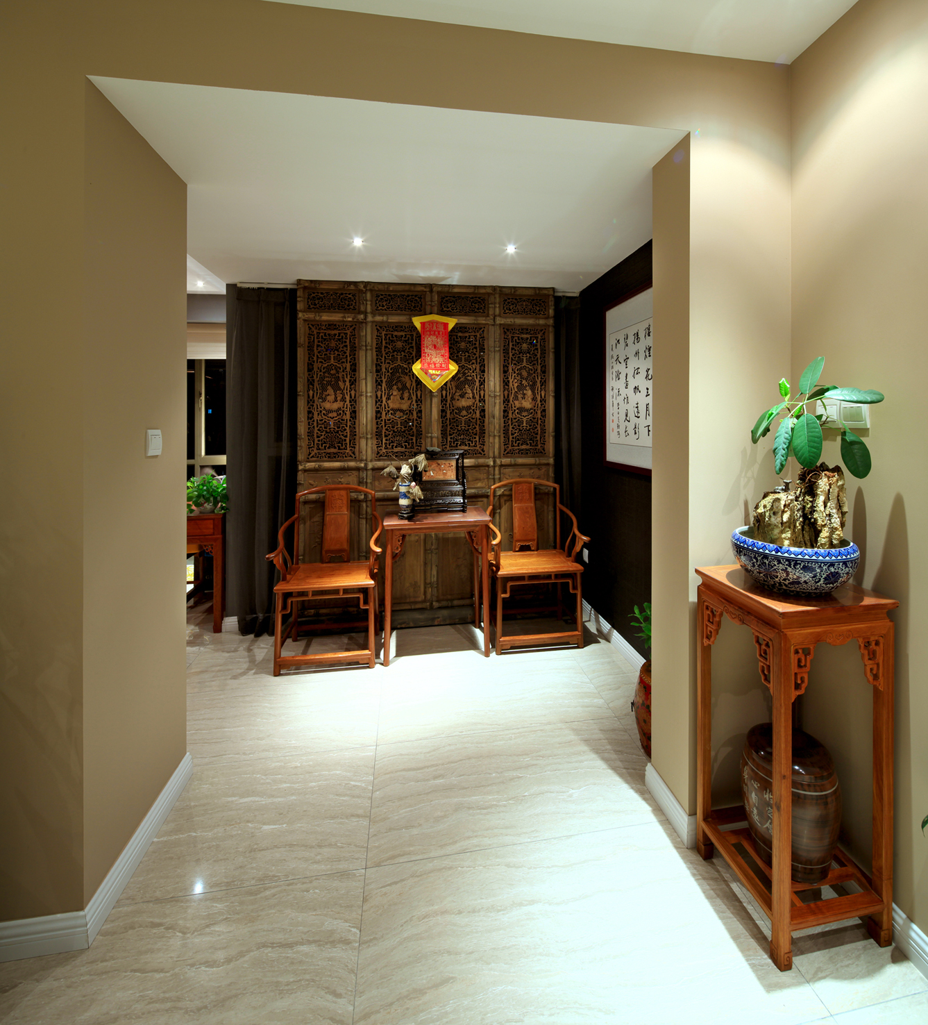 精美奢華的多層次的吊燈加上高雅的吊頂設(shè)計堪稱完美,不但巧妙地增添了房間的層次感和質(zhì)感還于無形中增添了房間的豪華的視覺享受。房間的而整個設(shè)計奢華而不浮躁,簡約而不簡單,莊重而不木訥。簡約亮眼的紅木色沙發(fā)配置,水靈經(jīng)驗的大紅色裝飾,為整個房間增添了一縷縷生動和活力。