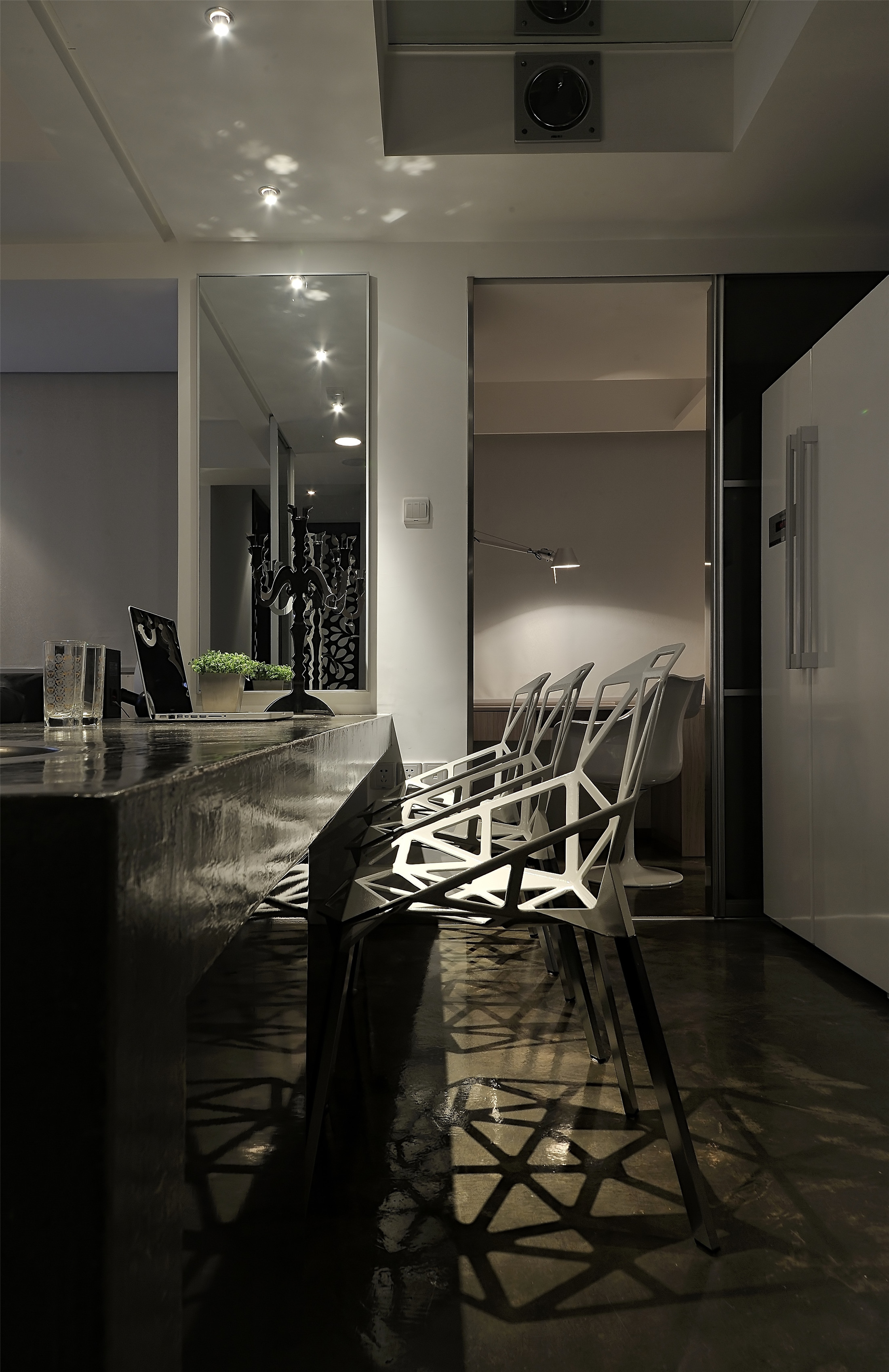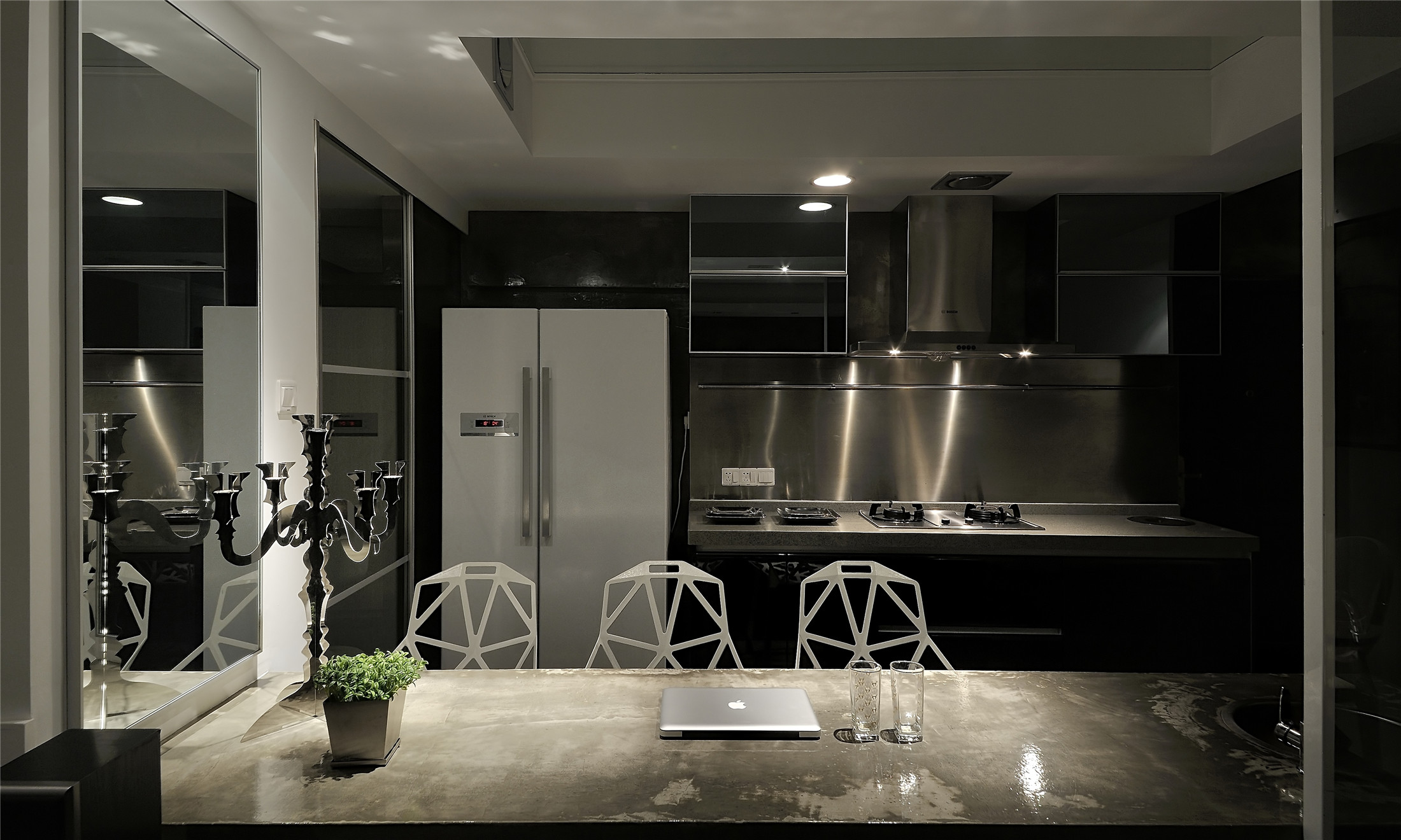 “不用一片瓷磚”,設(shè)計(jì)之初,主人便給這個(gè)新家烙上了鮮明的材質(zhì)標(biāo)簽。當(dāng)我們走進(jìn)這個(gè)空間時(shí),“酷”這個(gè)字眼是對(duì)目之所及的區(qū)域最佳的注解。以較少的色彩,加之金屬與玻璃塑以冷峻,營(yíng)造出居室的男人味。當(dāng)這樣一個(gè)居家空間呈現(xiàn)在我們面前的時(shí)候,審美上的愉悅不加醞釀地沖擊著我們的內(nèi)心。