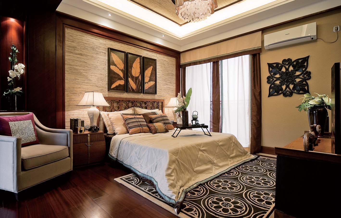 臥室的空間范圍很大,在布局上簡單的劃分,因此給人一個明亮的空間效果。東南亞臥室最大特色不是空間布局上,而是在色彩的使用。東南亞裝修風(fēng)格常使用的色彩是檀木紅、黃色等鮮艷的顏色,這樣會給人一種熱情洋溢的感覺,使人非常的舒適享受。加上現(xiàn)代家具,營造了一種時尚溫馨的臥室環(huán)境。