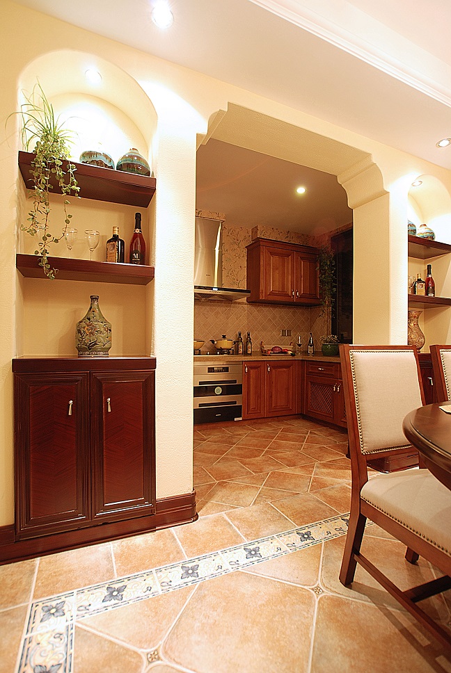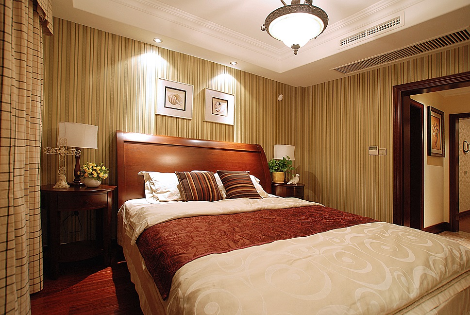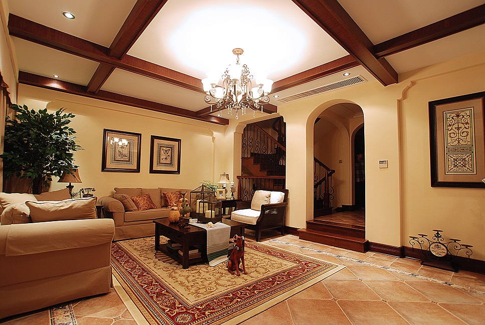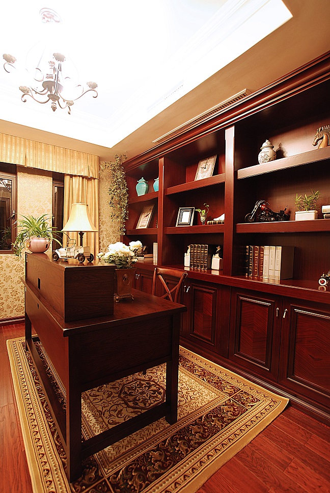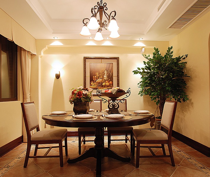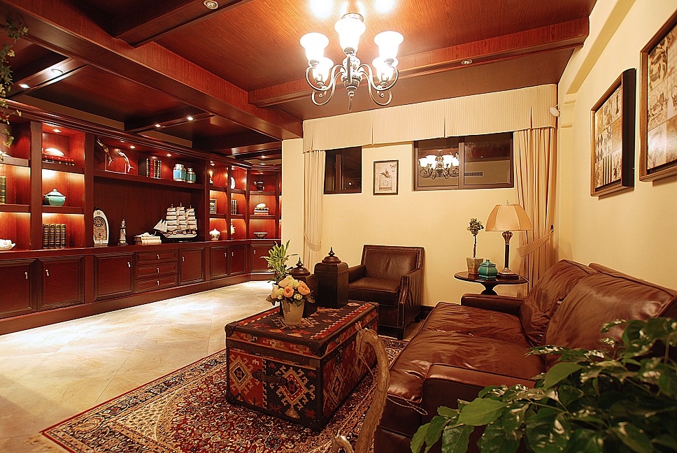 設(shè)計師對于色彩的運用也頗具匠心!美式風(fēng)格強調(diào)采用暗棕、土黃為主的色彩,這種色彩把簡潔懷舊的特點體現(xiàn)得淋漓盡致!試想一下,您走入這樣的空間內(nèi),您是否感受到一股清新自然的味道呢?您是否感受到一種原生態(tài)的質(zhì)感呢?設(shè)計師把這個空間打造成了一個自然清新脫俗的意境!彰顯美式的高貴品質(zhì)!