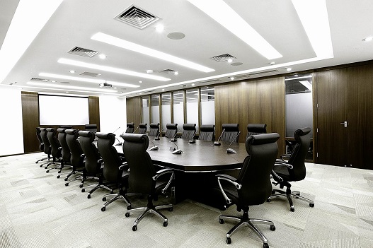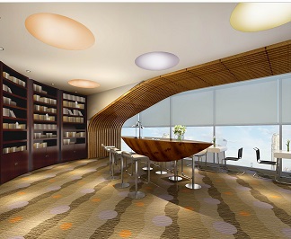 其次,是會議廳裝修設(shè)計,會議廳主要是長方形,在其中間擺放這一個長形會議桌,對于會議廳而言,其光線是極其重要的,在案例中,設(shè)計師在會議廳上面安裝了多排節(jié)能燈,充分的考慮到了會議廳光線的問題。