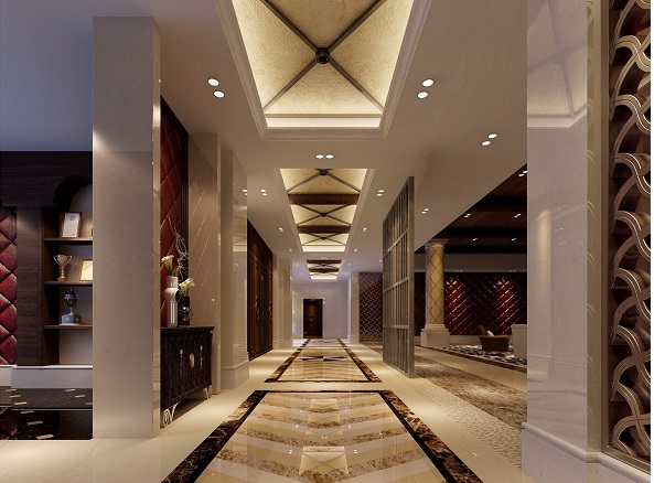 除了空間布局之外,在燈光、顏色的裝飾上也是十分講究的,不能過于簡陋。最好是采用時尚、華麗的燈具,給人眼前一亮的感覺。在加上顏色搭配,更加提升了大廳的整體裝飾效果。