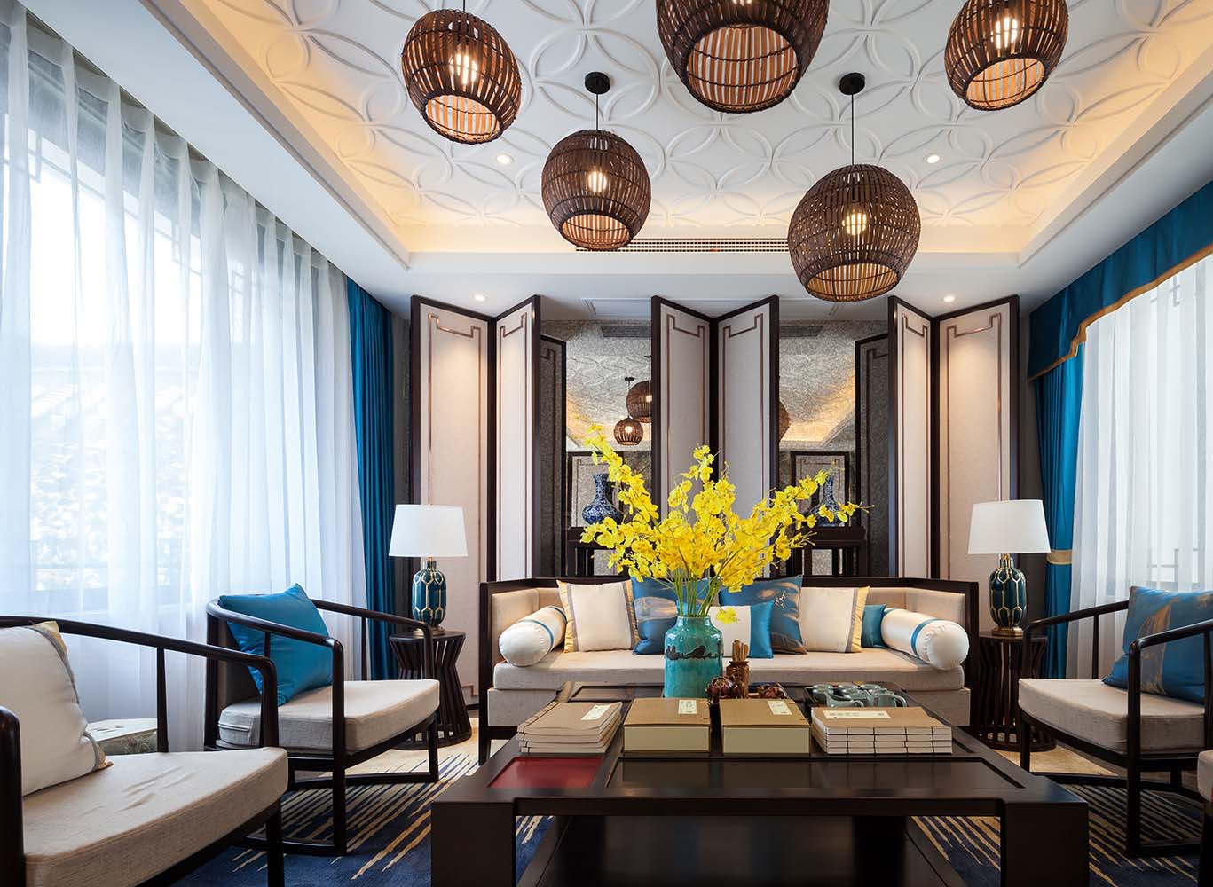 在本 獨(dú)棟別墅設(shè)計(jì) 中,設(shè)計(jì)師牢牢抓緊中式風(fēng)格的特點(diǎn)。繼承了明清時(shí)期家居理念的精髓,能夠改變?cè)锌臻g布局并與現(xiàn)代相結(jié)合,同時(shí)也真正的體現(xiàn)了傳統(tǒng)與時(shí)尚并存。 設(shè)計(jì)師在本獨(dú)棟別墅裝修設(shè)計(jì)中,舍棄了浮華的 中式別墅裝修風(fēng)格 ,在本款裝修設(shè)計(jì)過(guò)程中,著。